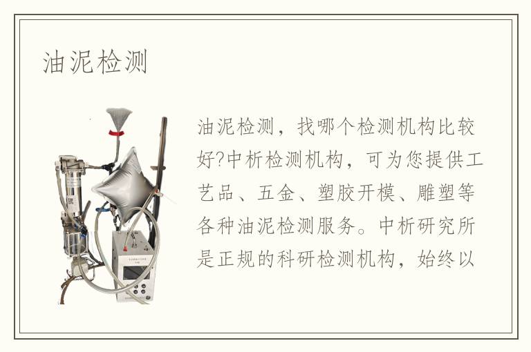 北京中科光析科學(xué)技術(shù)研究所,可為您提供工藝品、五金、塑膠開(kāi)模、雕塑等各種油泥檢測(cè)服務(wù)。中析研究所是正規(guī)的科研檢測(cè)機(jī)構(gòu),始終以科學(xué)研究為首任,以客戶(hù)為中心,在嚴(yán)格的程序下開(kāi)展檢測(cè)工作,為客戶(hù)提供產(chǎn)品檢測(cè)及質(zhì)量控制的解決方案,竭誠(chéng)為廣大客戶(hù)提供正規(guī)科學(xué)的檢驗(yàn)檢測(cè)、研發(fā)分析服務(wù)。